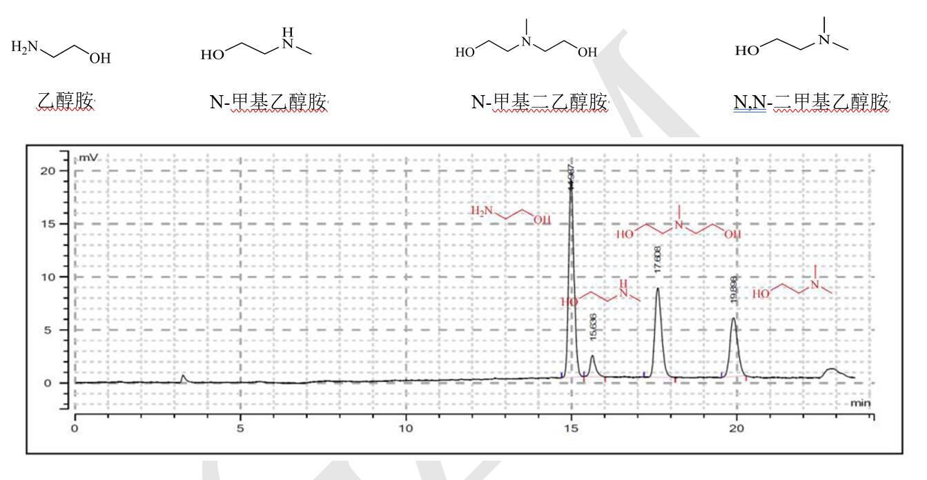 案例說明:Comixsil RP-100 利用疏水+陽離子交換的混合模式,可以利用醇胺類化合物之間疏水和離子交換的差異保留和分離,可以通過調(diào)節(jié)有機相的比例和 TFA 的濃度調(diào)節(jié)保留時間。