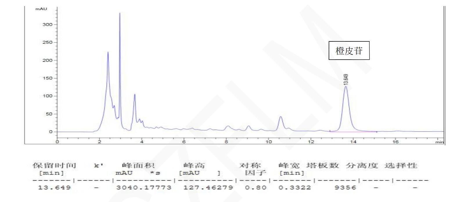 理論塔板數(shù)按橙皮苷峰計(jì)算不低于 5000