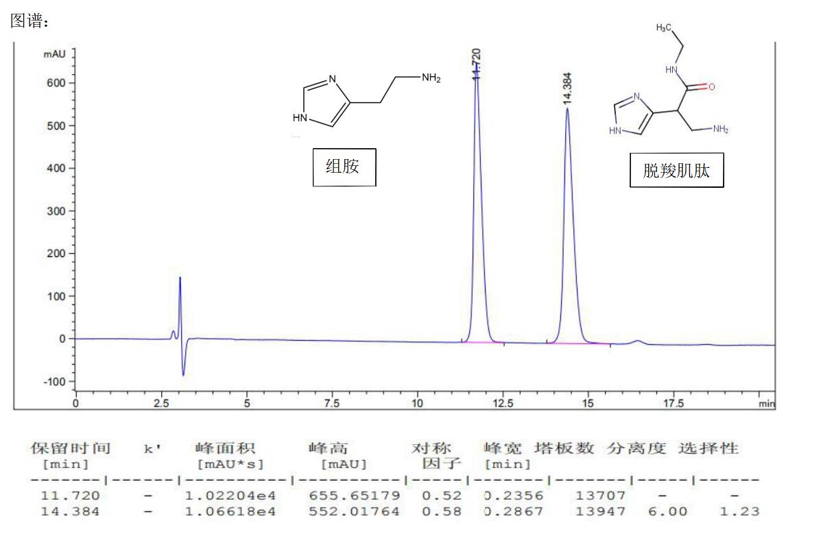 脫羧肌肽與組胺的HPLC色譜分析,SuperLu SCX 分離脫羧肌肽與組胺