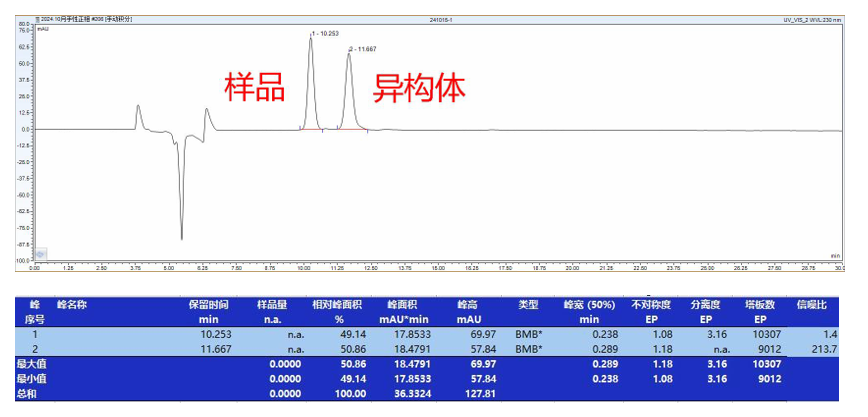 綜上所述,使用菲羅門手性柱對烏帕替尼中間體進行手性拆分是一個復雜但重要的過程。通過選擇合適的色譜柱、配置適當?shù)牧鲃酉?、進行專業(yè)的操作和數(shù)據(jù)分析,可以確保拆分過程的順利進行和拆分后得到的對映體的質(zhì)量。 |