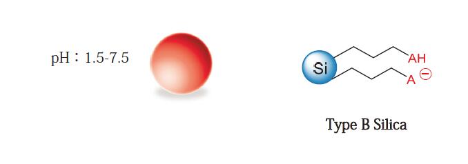 Comixsil HCS 短烷基鏈中嵌入可電離酸性基團,可提供陰離子排阻/陽離子交換/強氫鍵/ HILIC作用,可用于大極性堿性化合物和糖類、氨基酸的分析。 pH:1.5-7.5