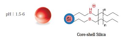 核殼硅膠柱效更高。長(zhǎng)烷基鏈中嵌入正電荷,可以提供??離子排阻/陰離子交換/氫鍵/RP作用,可以用于改善堿性化合物的拖尾和保留強(qiáng)親水酸性化合物等。
