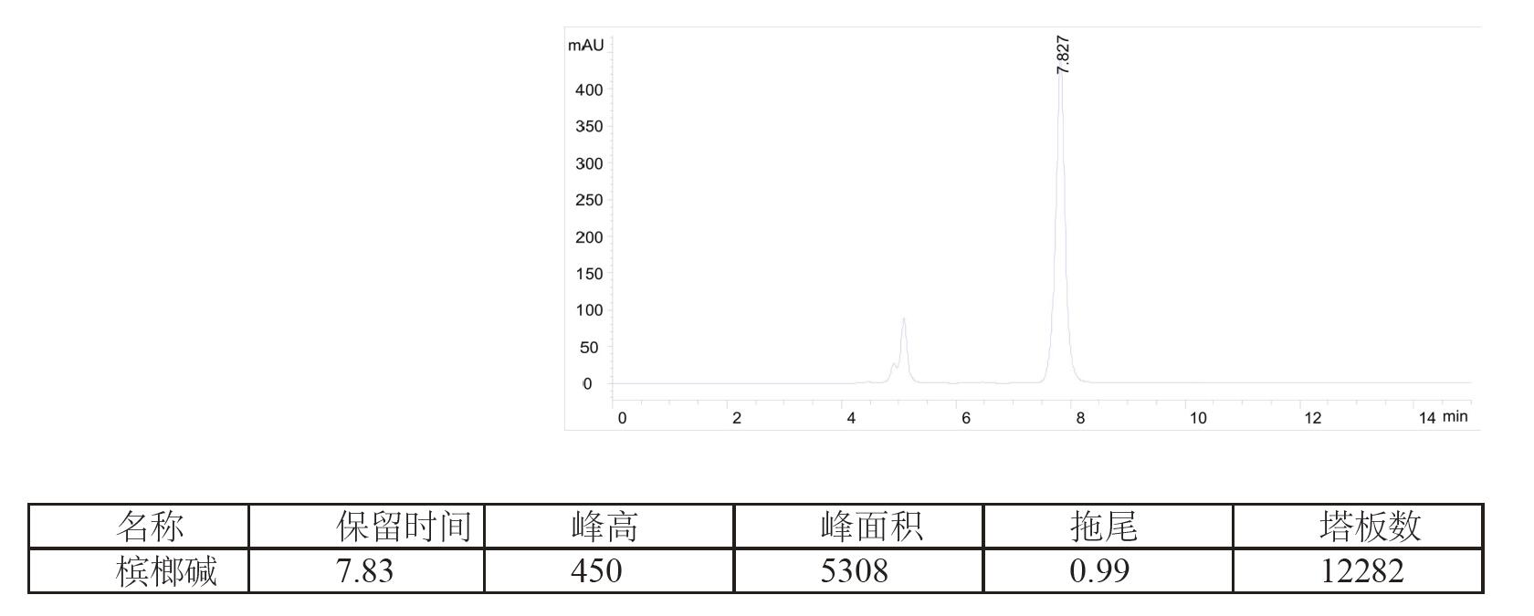 樣品:0.1 mg/mL 檳榔堿溶于流動(dòng)相中